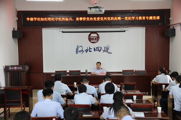 为庆祝中国共产党成立103周年,推动党纪学习教育走深走实,6月29日上午,公司党委副书记、纪委书记、工会主席李怀生以“争做学纪知纪明纪守纪的标兵 勇攀管党治党爱党兴党的高峰”为题,在公司四楼会议室为各分公司党总支、直属党支部书记和党群办主任,以及公司党群部门所有人员,讲授了一堂生动的党纪学习教育专题党课。