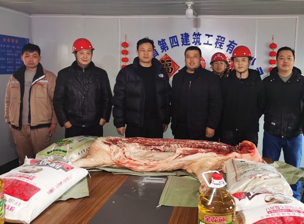 2022年1月26日,安徽珍珠水泥集团股份有限公司工程负责人王利杰带队,专程来到三分公司项目部,为春节期间仍坚守现场施工的职工送来了猪肉、大米、面粉等慰问品。王利杰对现场施工进度、质量、安全管理等表示肯定,对项目部优质高效完成熟料库滑模施工以及春节期间不停工等举措给予赞扬。